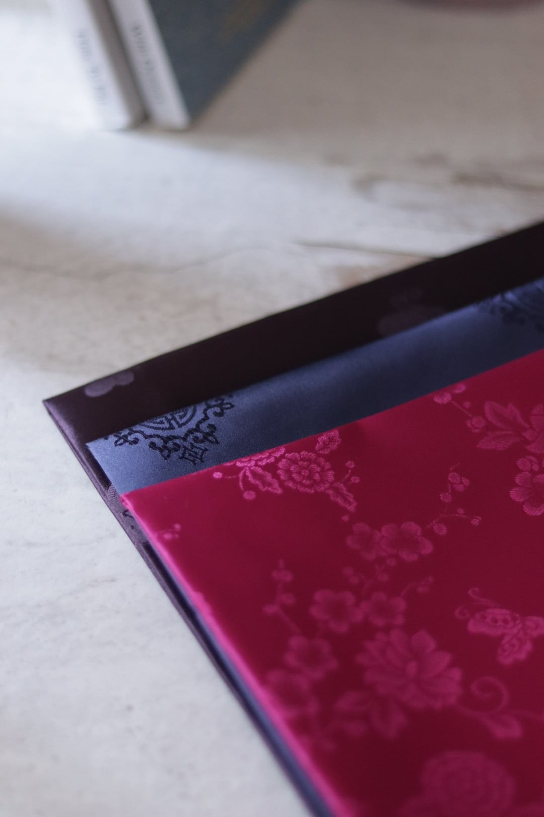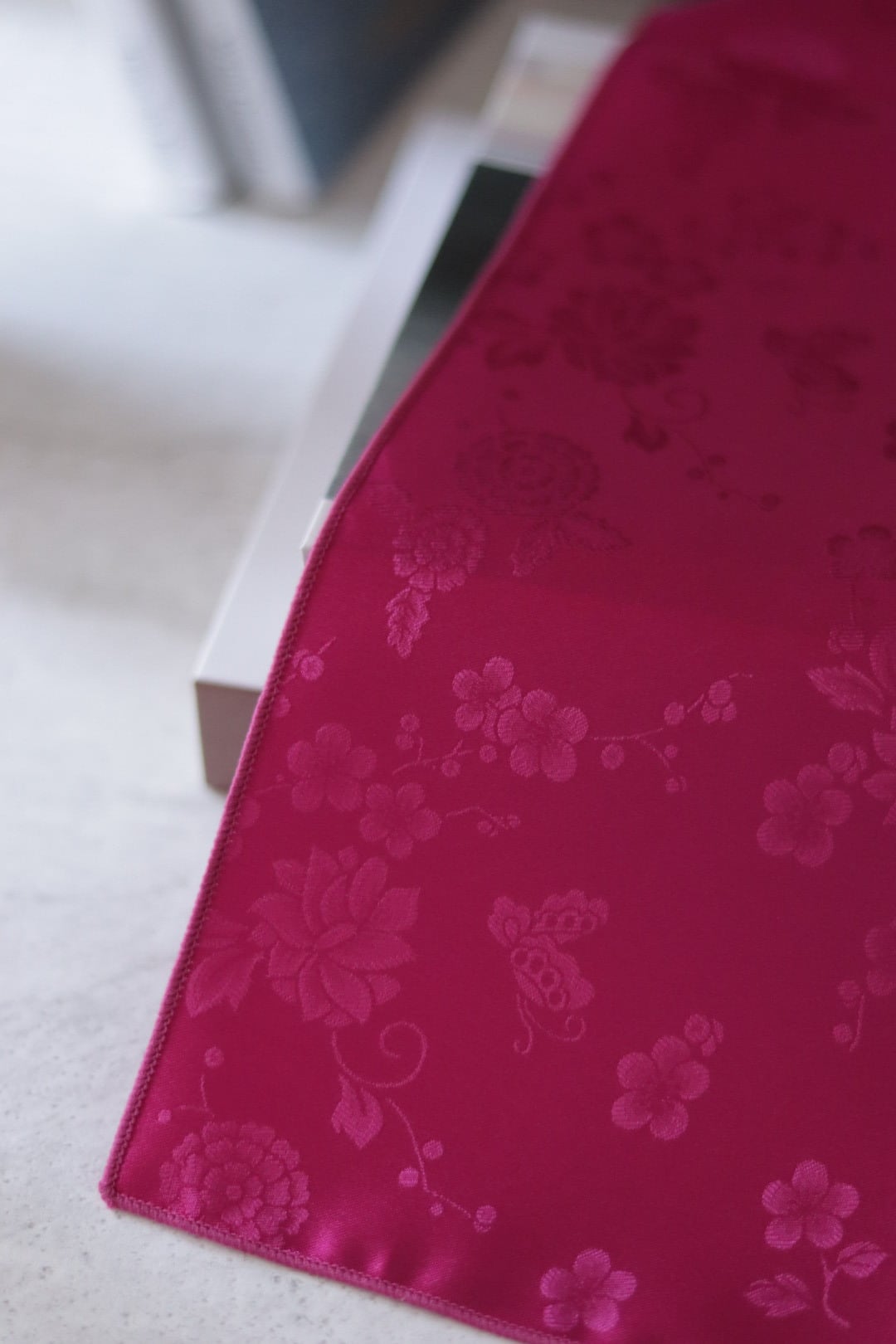落ち着いた光沢と繊細な文様が美しい、上品なポジャギ。