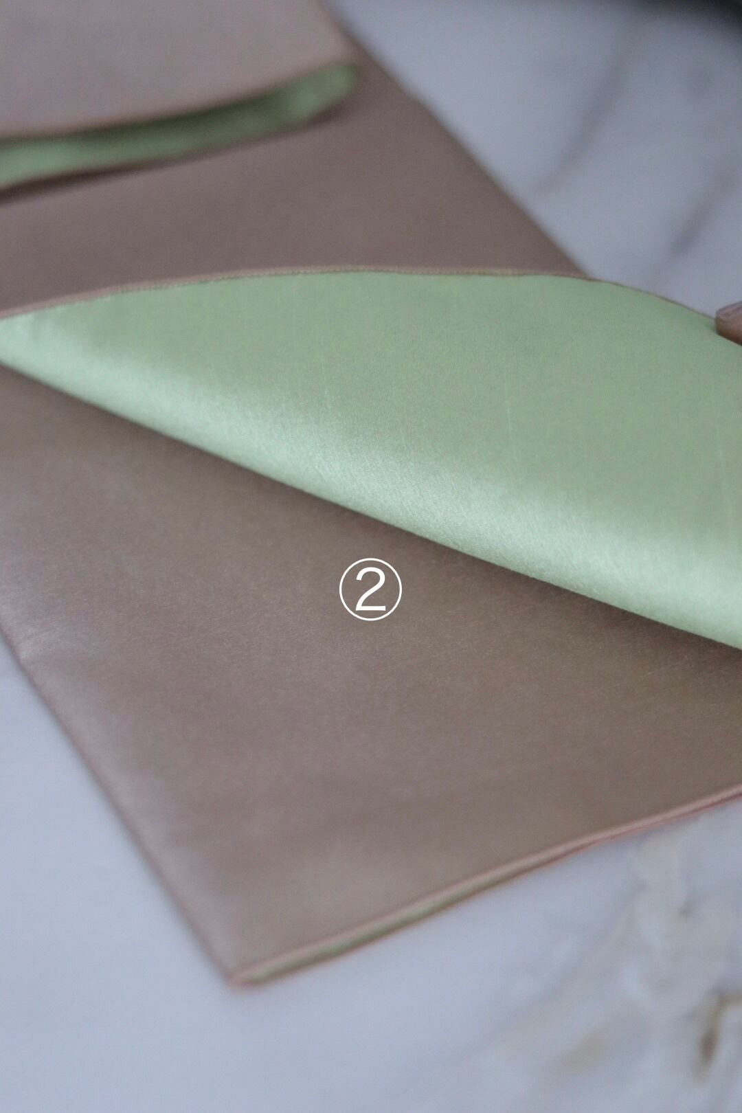 2色のリバーシブル仕様で、折り返して使うと美しい表情が生まれ、上品さがぐっと引き立ちます。