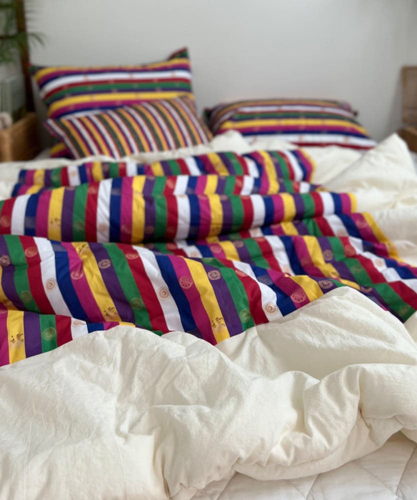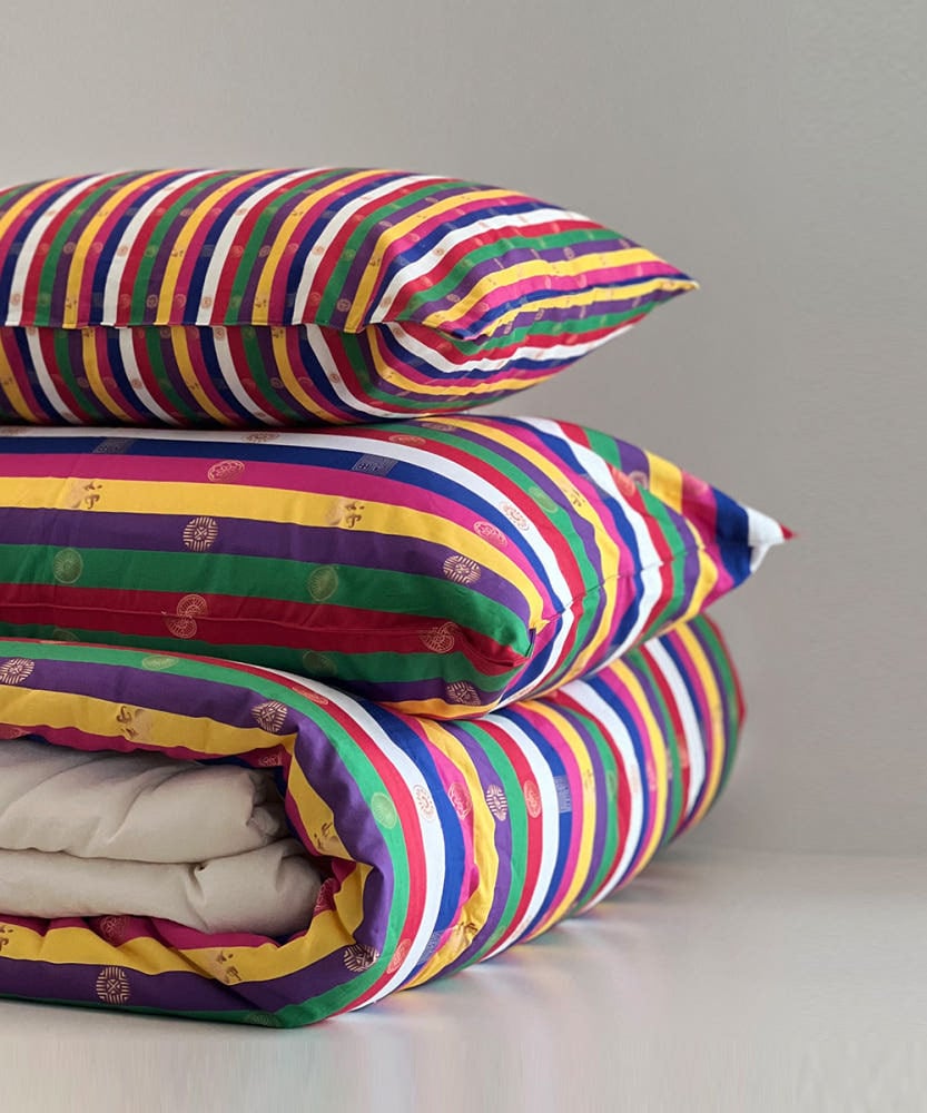 色とりどりのセクトンの色味と、シルクのような光沢感はそのままに、100%コットン生地で仕上げました。