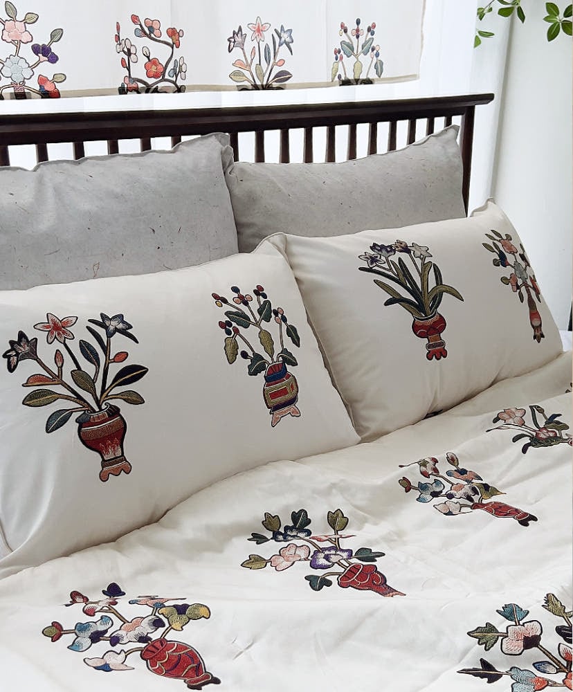 さまざまな花が刺繍されており、