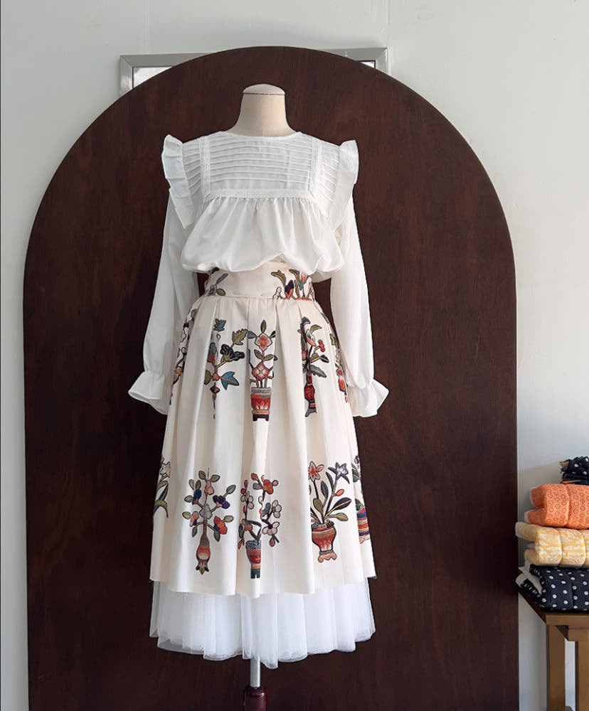 韓国刺繍の雰囲気をそのまま表現したプリント生地です。