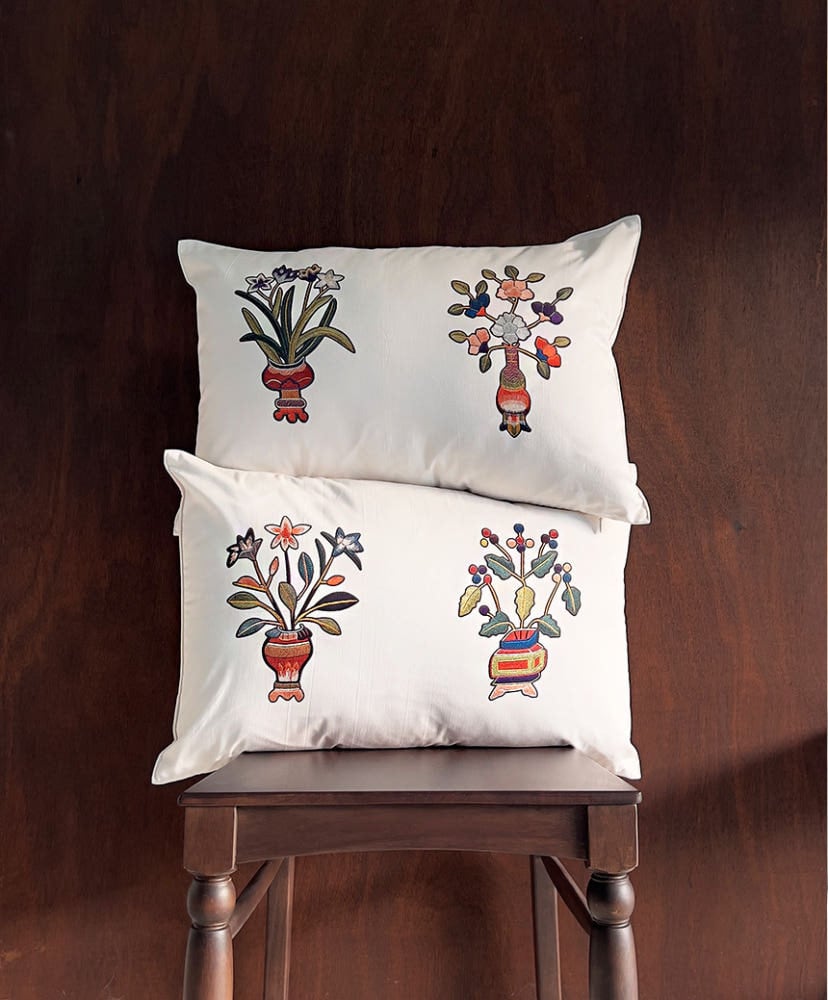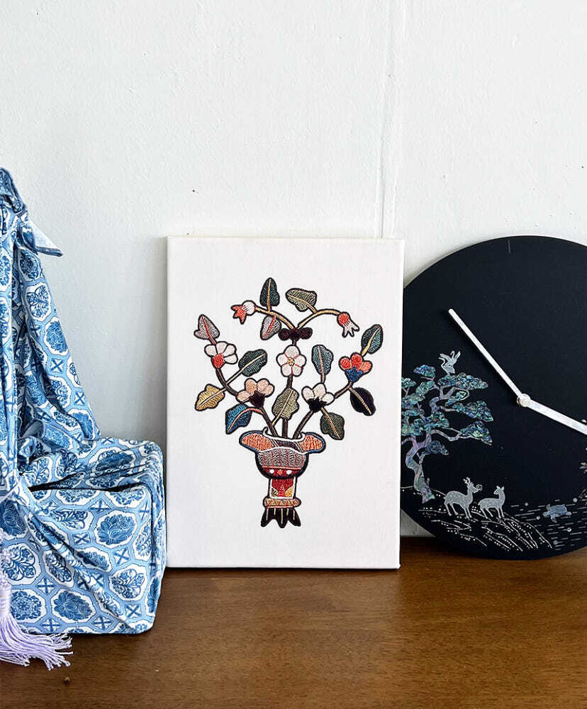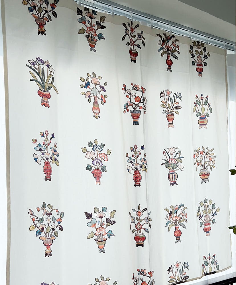 刺繍の花瓶文様・吉祥図屏風