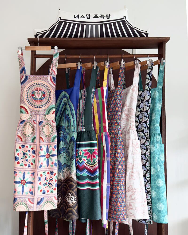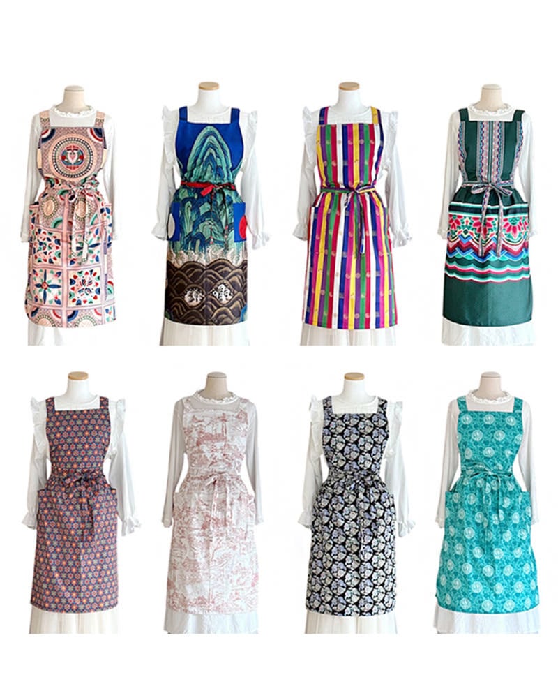 韓国伝統文様をあしらった綿100%の上質エプロン。