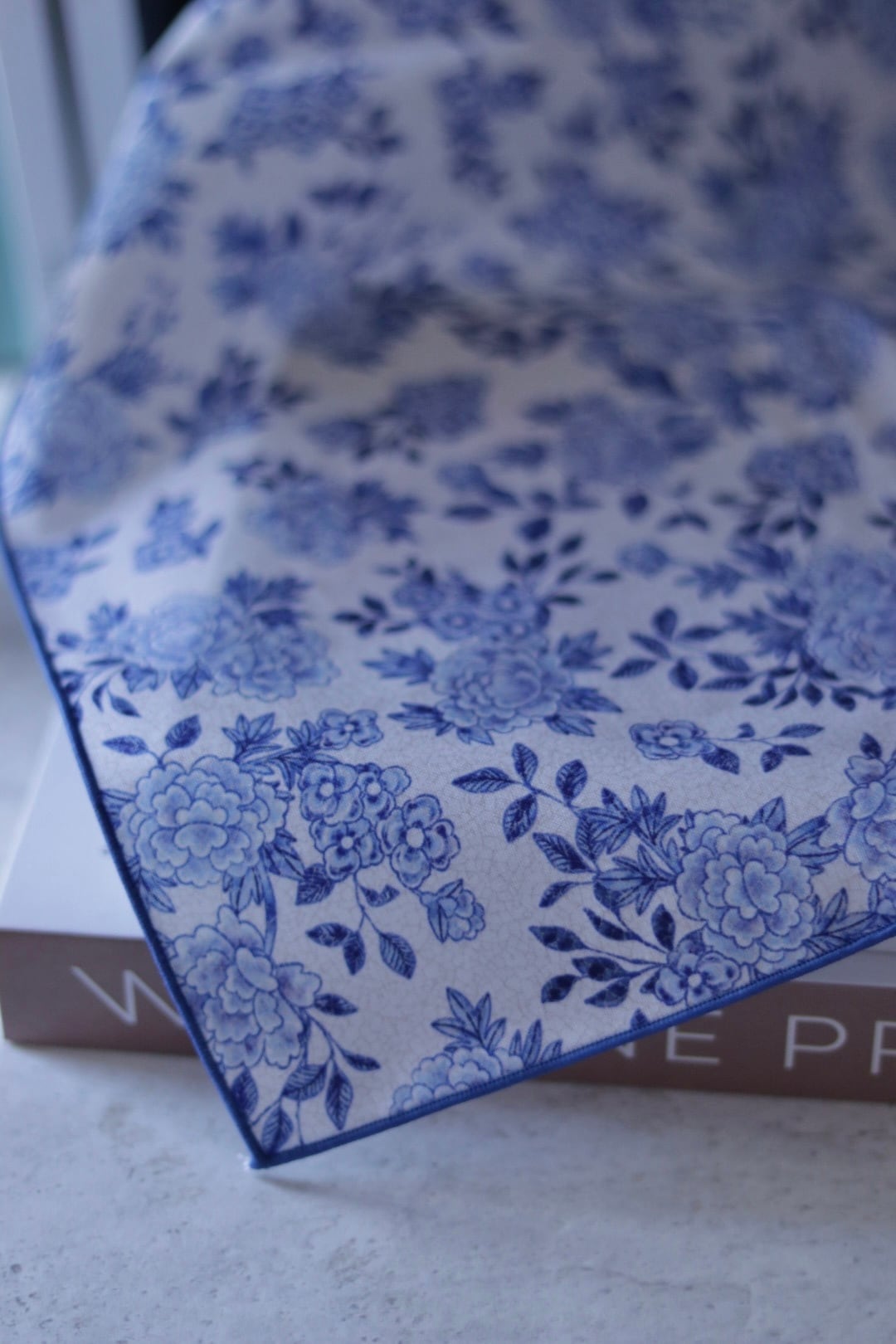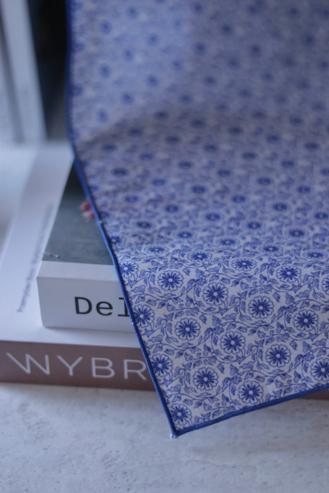 やわらかなコットン素材に、青の花柄が映えるデザインポジャギ。