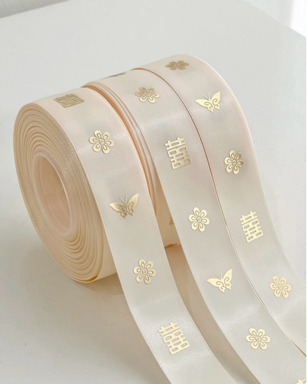 【金箔エンボスリボン|ラッピングを格上げする両面サテン】